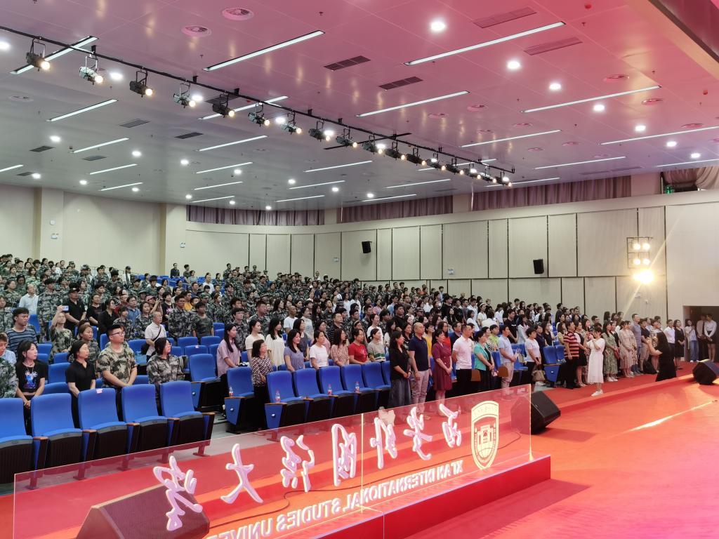 师生共唱校歌《放飞梦想》,本次典礼到此结束。衷心祝愿所有新同学在西外书写自己的开阔人生!祝福老师们节日快乐!