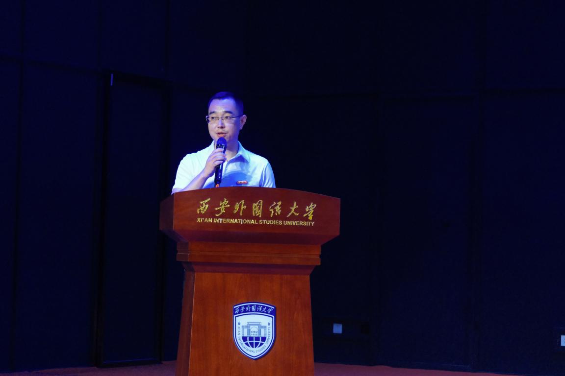 院党委书记郭富庭为全体同学讲授“开学第一课”——《从西外出发 让世界聆听中国声音》。他指出,建校七十载,我们与共和国同前进、共成长,希望大家牢记“爱国勤奋博学创新”校训,心怀爱国之情、培养强国之志、激发报国之行,以青春之我、奉献青春之国家,奋力走好新时代长征路。