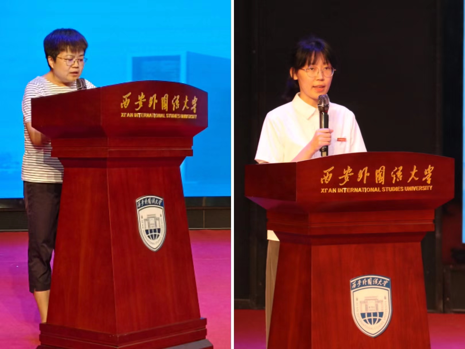 典礼在庄严的国歌中拉开帷幕。硕士生导师、本科生教师翟恒副教授作为教师代表发言,她对新生同学们表示欢迎,同时希望同学们勤奋努力,不负韶华,打好专业基础,积极提升综合能力。2023级硕士研究生董宇蕊作为研究生新生代表发言,她回忆了本科期间在西外的美好瞬间,并鼓励同学们牢记习近平总书记对“讲好中国故事,传播好中国声音”的殷切嘱托,用智慧和汗水书写属于我们自己的精彩篇章。