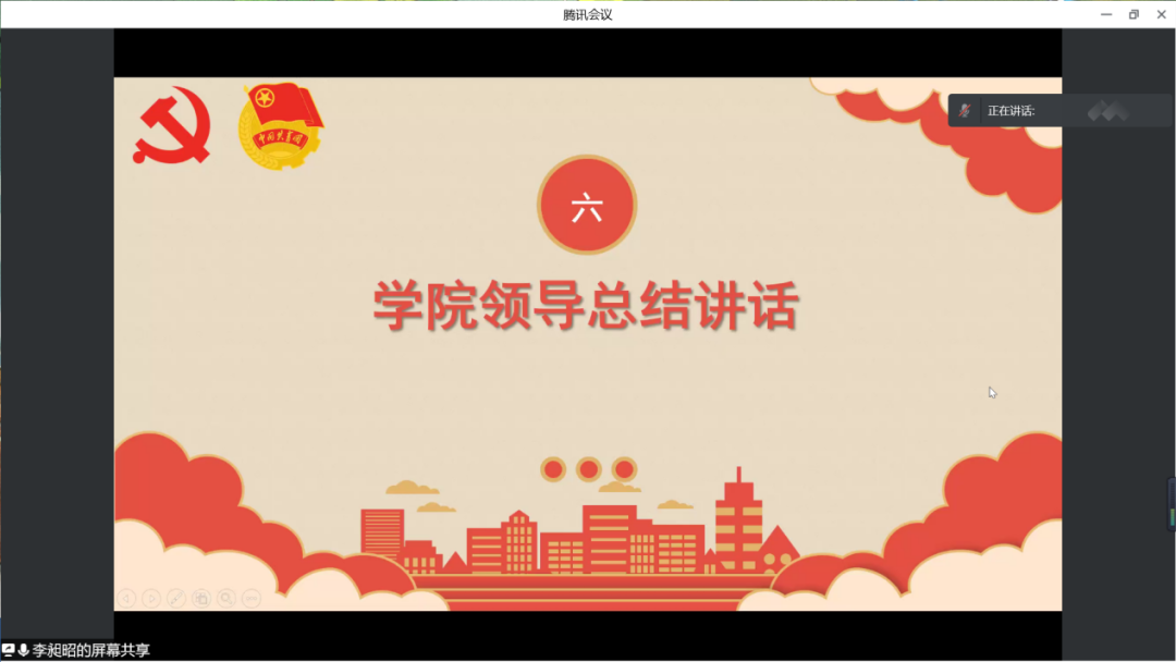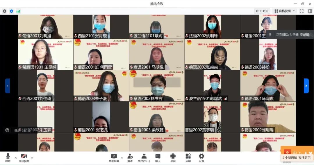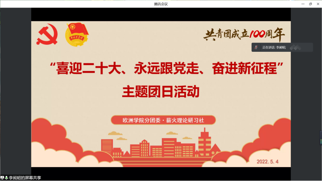 党委副书记纪彩玲、分团委指导老师李昶昭、学院全体团支部书记、团学组织学生骨干以及薪火理论研习社社员共计150余人线上参加会议。活动由分团委指导老师李昶昭主持。