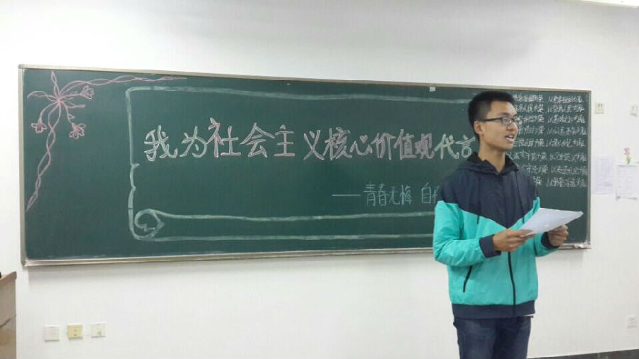 2014年10月19日晚,德语学院2014级各班举办了以“我为核心价值观代言”为主题的团日活动。