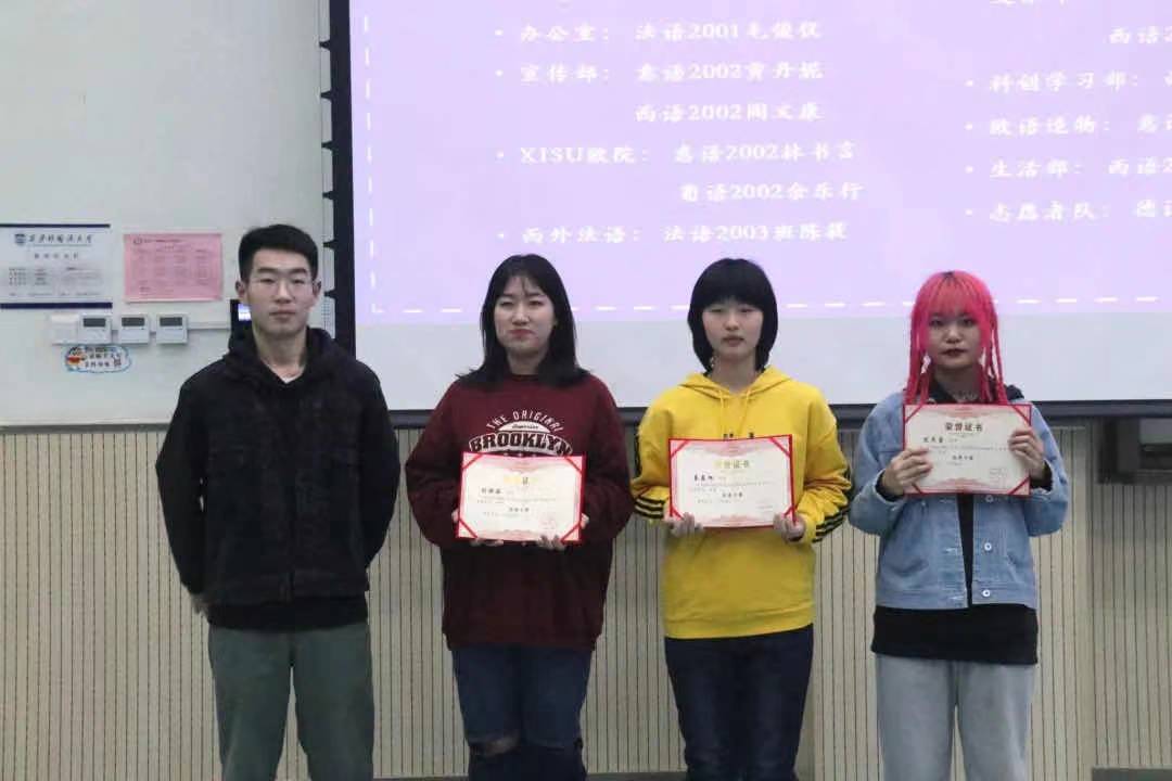 随后,学生会轮值副主席张立宣读各部门优秀干事名单,主席团为各部门优秀干事颁发奖状并合影留念。