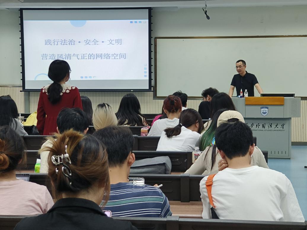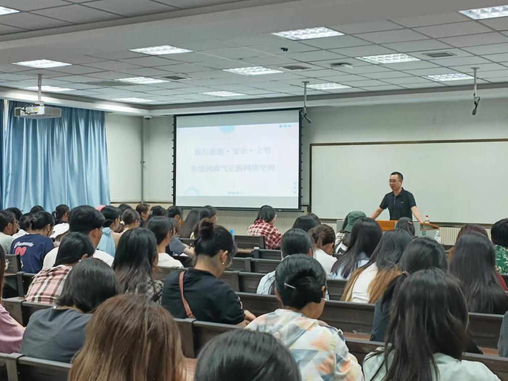 在实验楼A区204成功开展题为《营造风清气正的网络环境》的网络安全课,学院党委书记郭富庭为全体2022级学生讲授。