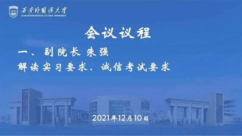 会议伊始,朱强老师解读了实习要求。按照学校要求,2022届毕业生实习学期为2022年1月15日至2022年3月31日,实习安排分为两种:学生自主联系实习或学院安排集中实习。学生需在实习期间做好实习记录,完成实习手册,实习单位也需针对学生实习情况作出评价鉴定。