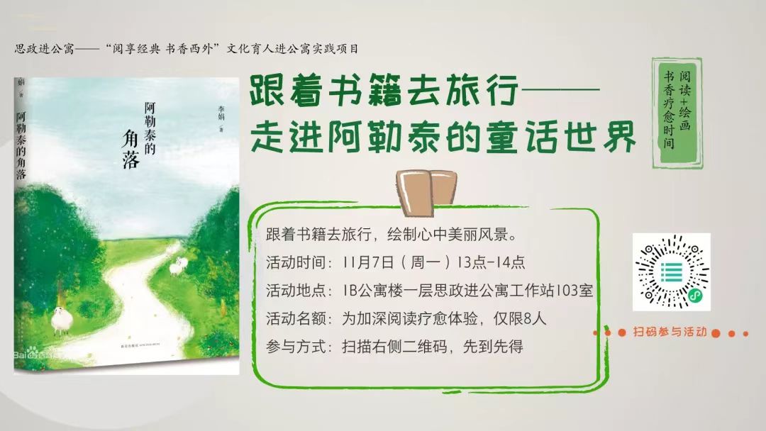 以铸牢中华民族共同体意识为主线,于2022年11月7日13:00,在1B公寓楼一层思政进公寓工作站103室举行“阅享经典 书香西外”文化育人进公寓实践项目系列之“跟着书籍去旅行——走进阿勒泰的童话世界”活动。来自奈飞工厂