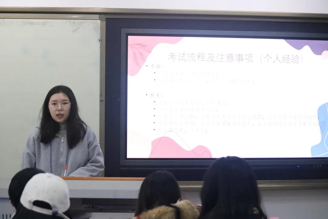 法语语言文学方向的徐佳欣同学则结合自身考试经验,对考试的时间、交通、住宿等方面做了分享。她提到:应提前安排好交通工具和出门时间,以免迟到错过考试。同时,她还强调:在复习的冲刺阶段,应注重知识的查缺补漏和错题的反复复习,在考试过程中注意拼写和语法错误等细节问题,避免因此丢掉不必要的分数。