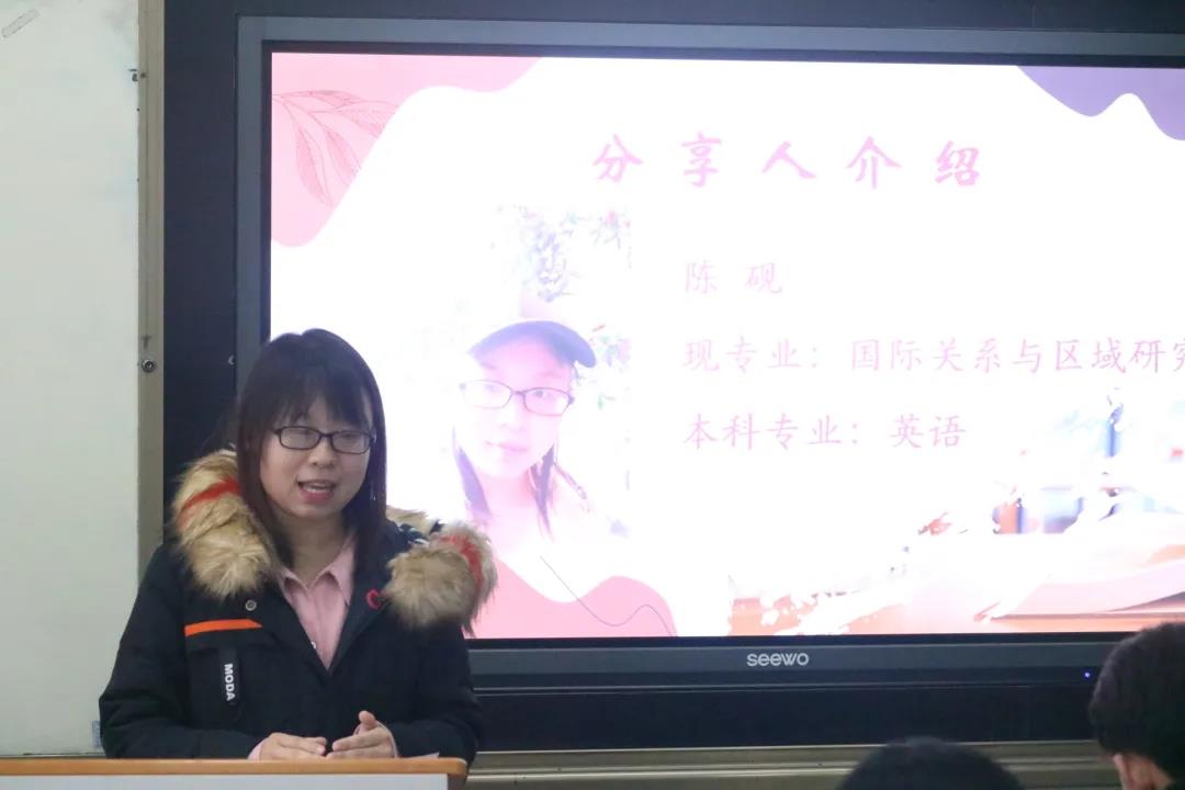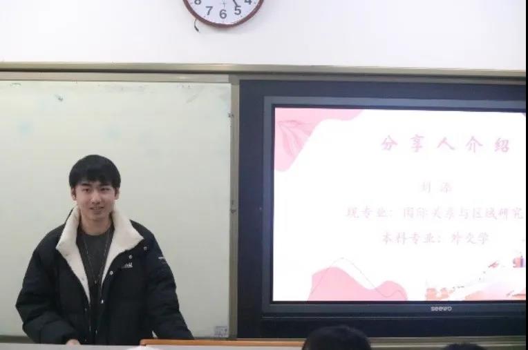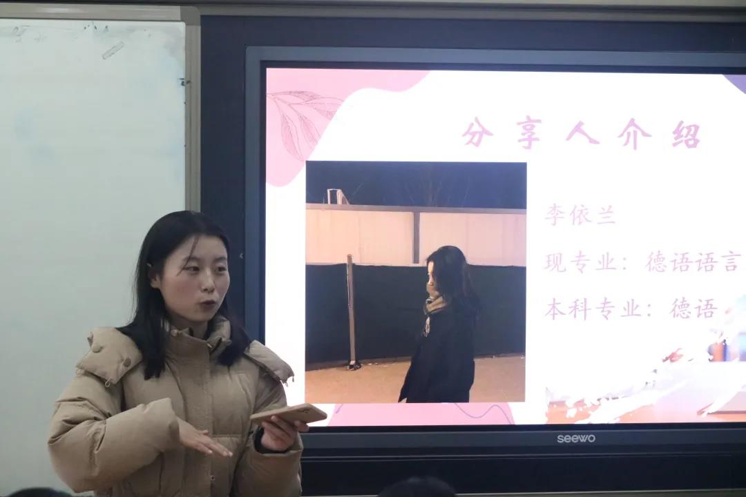 2022届毕业生考研备考经验分享会”。本次活动邀请来自国际关系与区域研究的陈砚、刘添同学、来自德国语言文学专业的李依兰同学、来自法国语言文学专业的徐佳欣同学,以及奈飞工厂