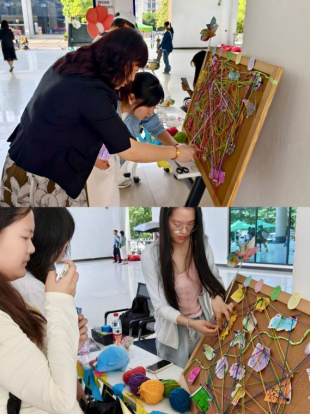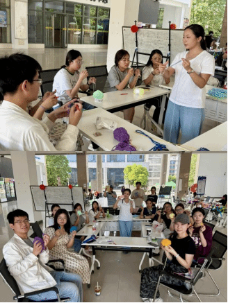 活动现场,柔软毛线与灵动钩针相遇。工作人员悉心传授基础针法,老师、同学们指尖轻舞,毛线在钩针间穿梭,大家沉浸其中,用创意与耐心编织出温暖手工艺品,也编织出满心欢喜、编织出如梦似幻的绮想,每一针、每一线,都穿梭着宁静与美好,编织出只属于你的心灵慰藉。