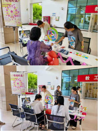 情绪轮盘悠悠转动,转出生活的酸甜苦辣。老师和同学们直面轮盘给出的情绪,在对应的彩纸上创作。色彩与线条交织,大家将情绪具象化,学会理解、接纳情绪,制作出属于自己的情绪徽章,完成与心灵的和解。