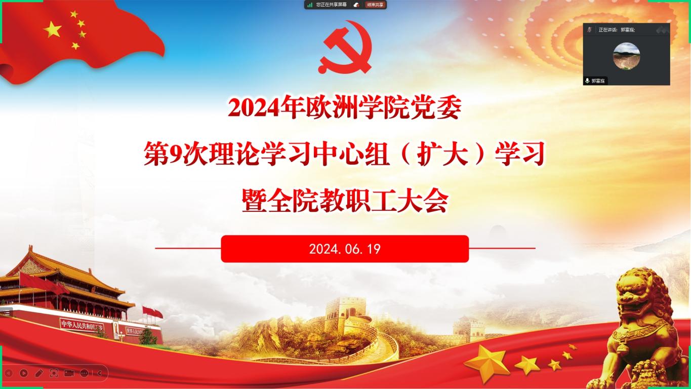 党委线上召开第9次理论学习中心组(扩大)学习暨全院教职工大会。中心组全体成员、全院教职工参会,会议由党委书记郭富庭主持。