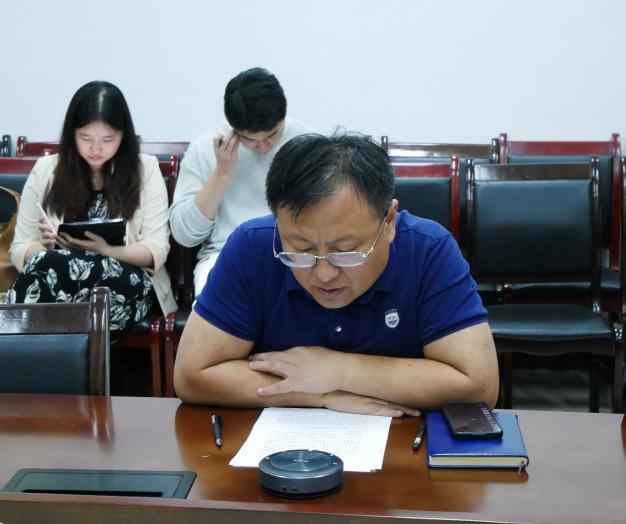 在随后进行的理论学习环节中,陈晨、曹韦、瞿鹏杰三位老师分别同全院教职工一起领学了省委常委会议精神、奈飞工厂