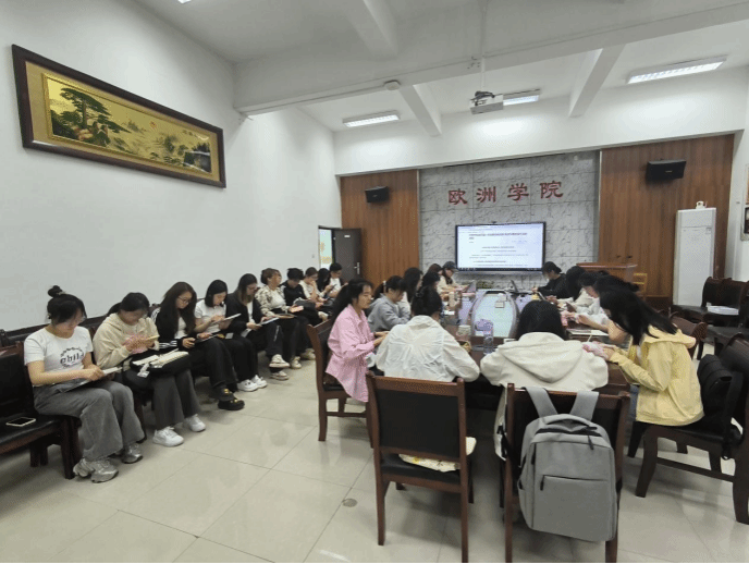 5月11日全天,全体学员在JG110会议室开展集中学习,先后逐字领学了《中共中央关于进一步全面深化改革 推进中国式现代化的决定》《中国共产党纪律处分条例》,同时,大家还按照个人所学专业分组研读了《2025年政府工作报告(德文)(法文)(西文)(英文)》全文内容,将理论学习与专业建设相结合,在坚定理想信念中,练就过硬本领。
