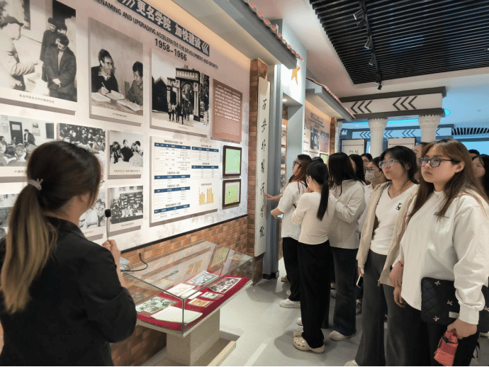 4月28日中午,全体学员走进校史馆,开展“学校史 共奋进”实践教学活动。在讲解员的引导下,学员们依次参观“历史沿革”“办学成就”“文化传承”等展区,通过珍贵文献、历史照片及多媒体资料,深入了解学校建校以来的发展脉络、重大事件及杰出贡献,讲解员重点讲述了我校与国家发展同频共振的关键节点,在人才培养、学科建设、社会服务等领域的奋斗历程,全体学员在学习校史之中,进一步厚植爱校荣校情怀。