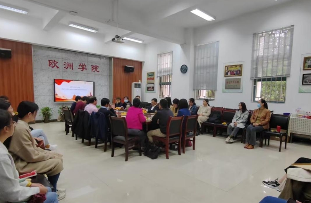 在G110会议室举办学习贯彻习近平总书记教师节重要指示精神座谈研讨会,学院班子成员、教工第一党支部全体党员教师、法语系、意大利语系全体教职工参与座谈,党委书记郭富庭主持会议。