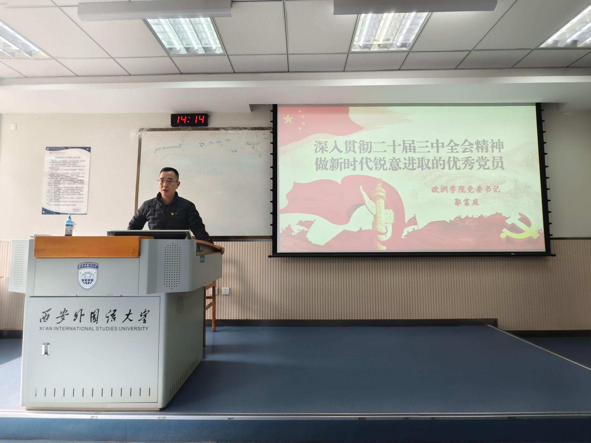 党委书记郭富庭为全体学生党员讲授了题为《深入贯彻党的二十届三中全会精神 做新时代锐意进取的优秀党员》的专题党课。