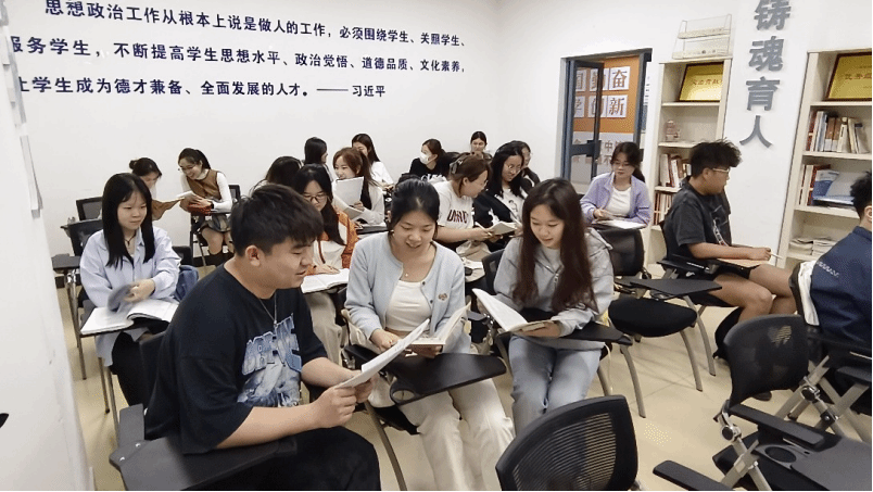 积极分子围绕“立志做有理想、敢担当、能吃苦、肯奋斗的新时代好青年”这一主题开展了主题沙龙互动,同学们通过个人自学、小组展示、互评交流的方式,认真学习了《习近平著作选读》第一卷和第二卷、《习近平谈治国理政》第四卷、《习近平新时代中国特色社会主义思想专题摘编》《党的二十大报告》《中国共产党章程》《关于新形势下党内政治生活的若干准则》《中国共产党纪律处分条例》《中国共产党普通高等学校基层组织工作条例》(2021年)共九部书籍。在学习过程中,同学们感受到理想对于青年的重要性,意识到能吃苦是青年磨砺自身意志的关键。大家充分准备、积极讨论,学习氛围浓厚。