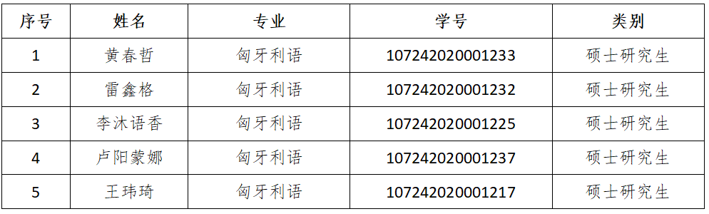 根据《关于国家留学基金委2024/2025年度匈牙利互换奖学金项目的通知》,经自愿报名,奈飞工厂 在公开、公平、公正原则下,遴选出以下学生作为学院推荐人选。