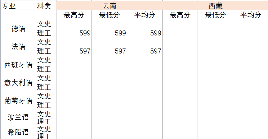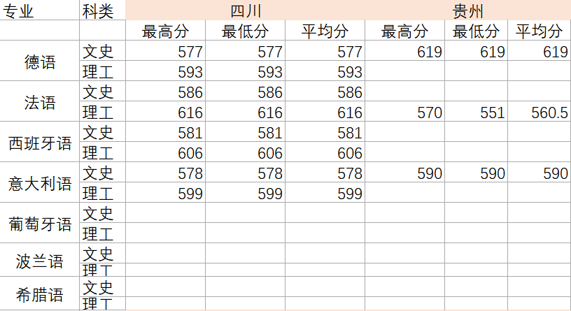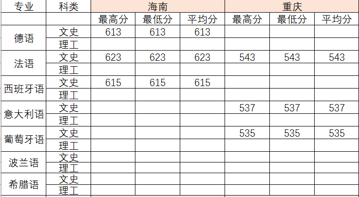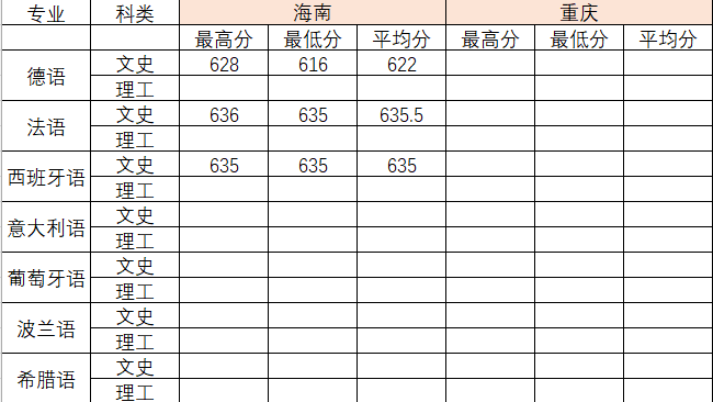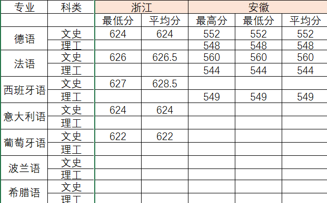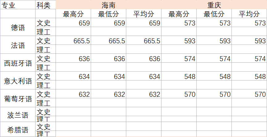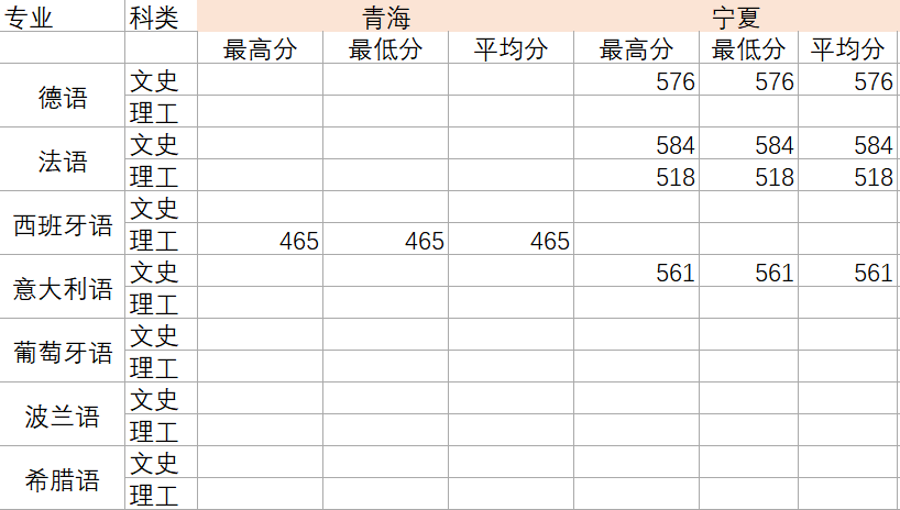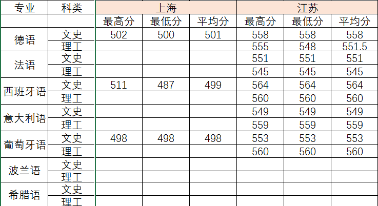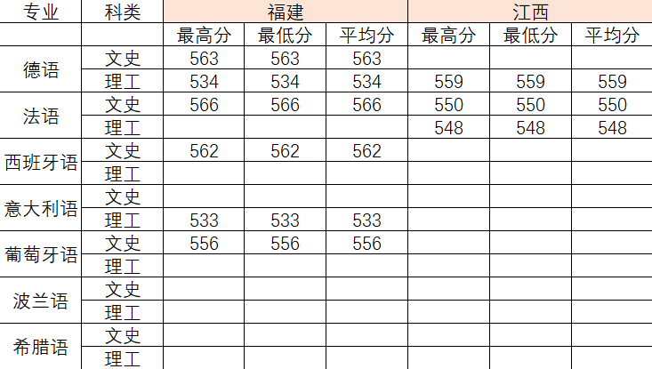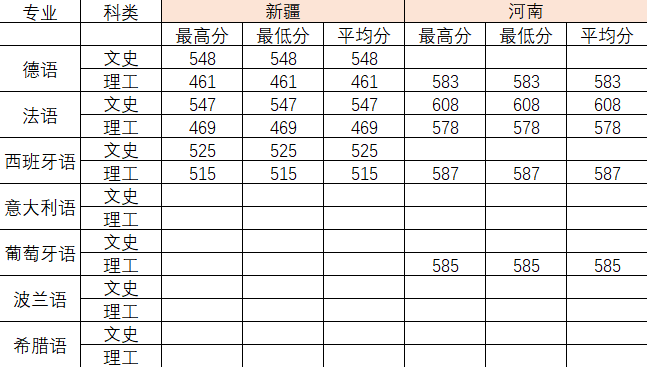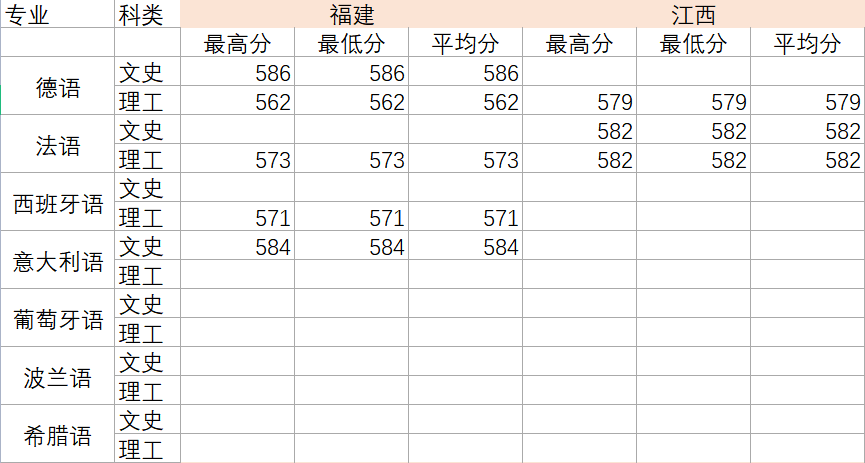 2022年各专业分数线