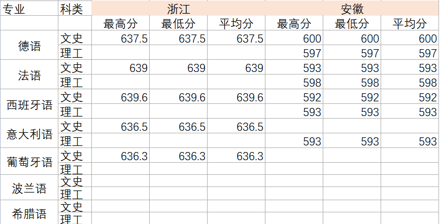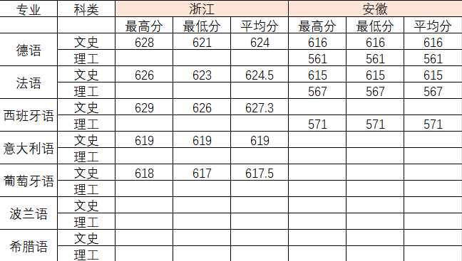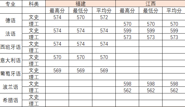 2020年各专业分数线