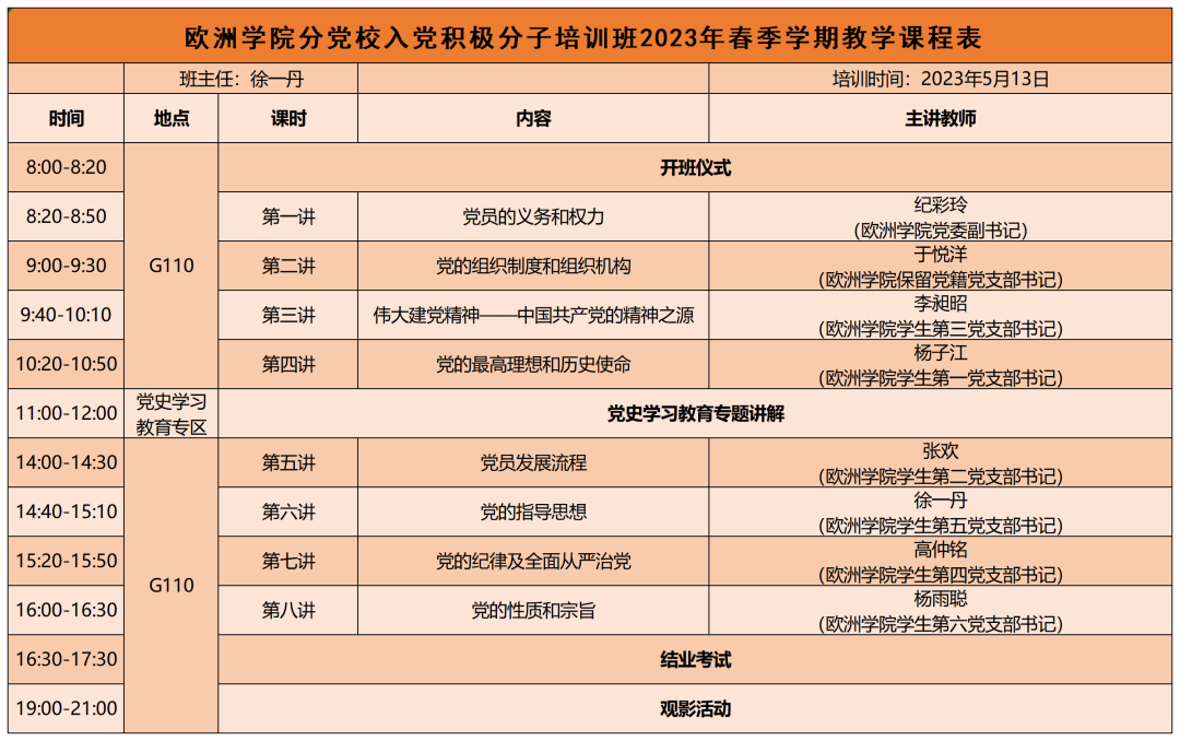 将习近平新时代中国特色社会主义思想和党的二十大精神作为必学内容,结合学生思想、学习和工作实际,围绕马克思主义基本理论、党的历史和使命、党的性质、党的宗旨和纪律、党的指导思想、党员的义务和权利、党的组织制度和组织机构、全面从严治党、入党的条件与程序等专题进行。