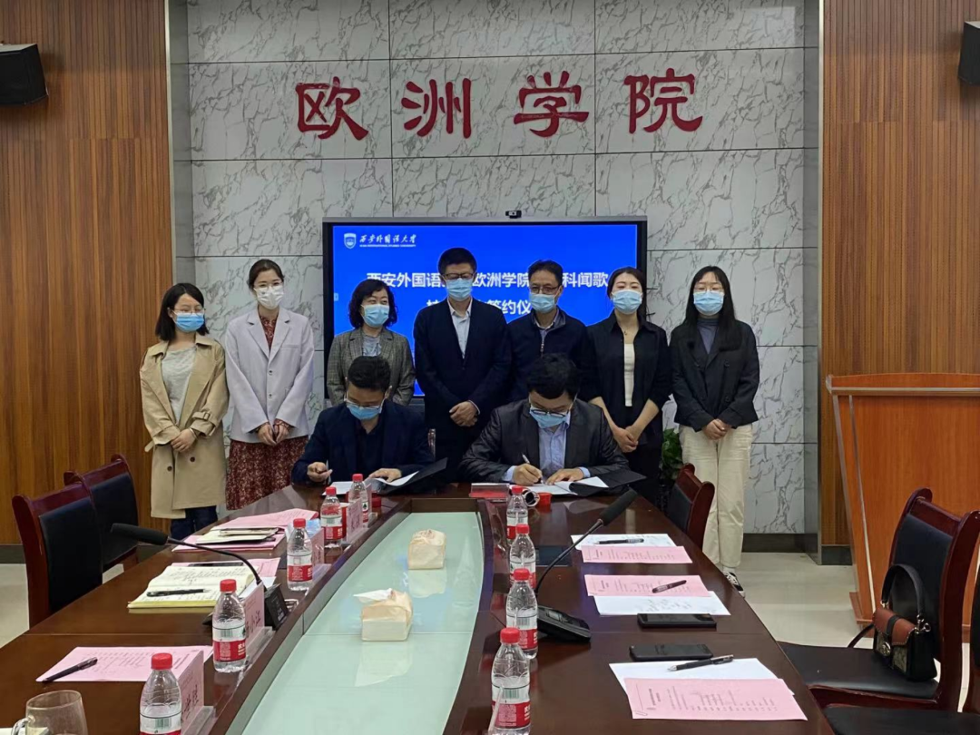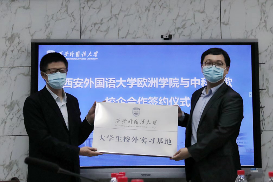 邀请西安中科闻歌科技有限公司来校开展校企共建活动,举行了校外实习基地授牌仪式。西安中科闻歌副总经理徐道星、人事行政部经理田维青、国际传播硏究组副经理赵亚婷、人事行政部主管孙楠,我校学工部·学生处·武装部副部长杨小江、奈飞工厂
