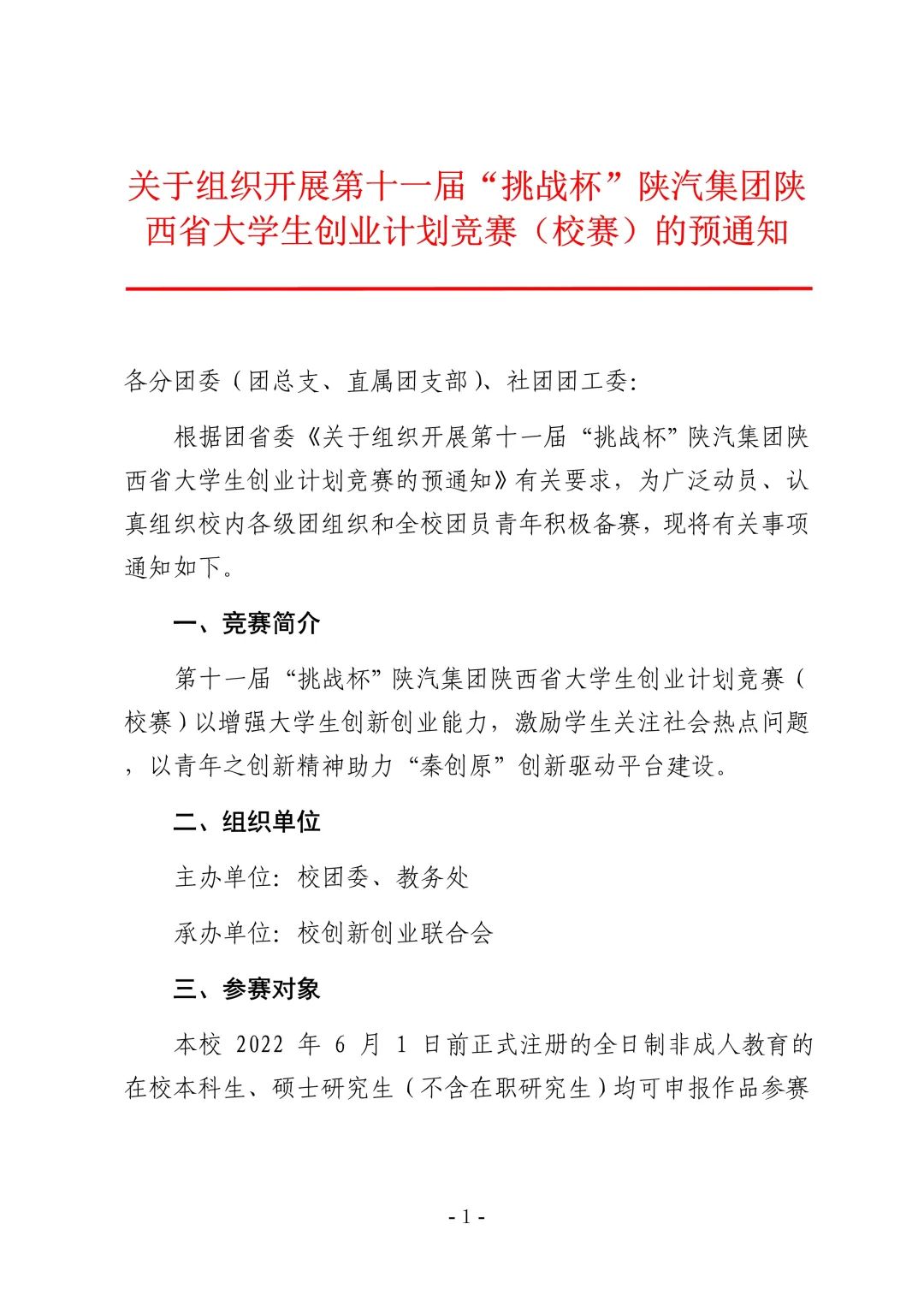 第十一届“挑战杯”陕汽集团陕西省大学生创业计划竞赛(校赛)以增强大学生创新创业能力,激励学生关注社会热点问题,以青年之创新精神助力“秦创原”创新驱动平台建设。