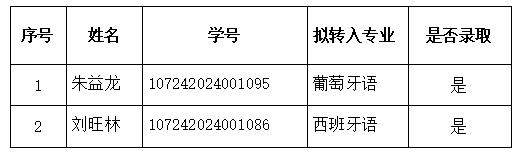 根据《奈飞工厂 本科学生转专业实施办法(试行)》的规定,奈飞工厂 组织了2024级本科生转专业工作。现将拟录取名单公示如下: