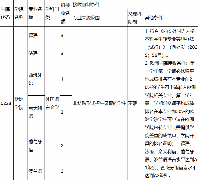 本科学生转专业实施办法(试行)》(西外发(2025)56号)的转出条件。