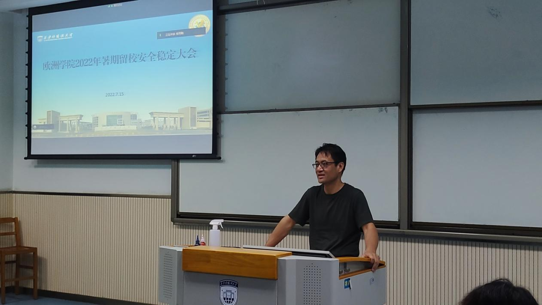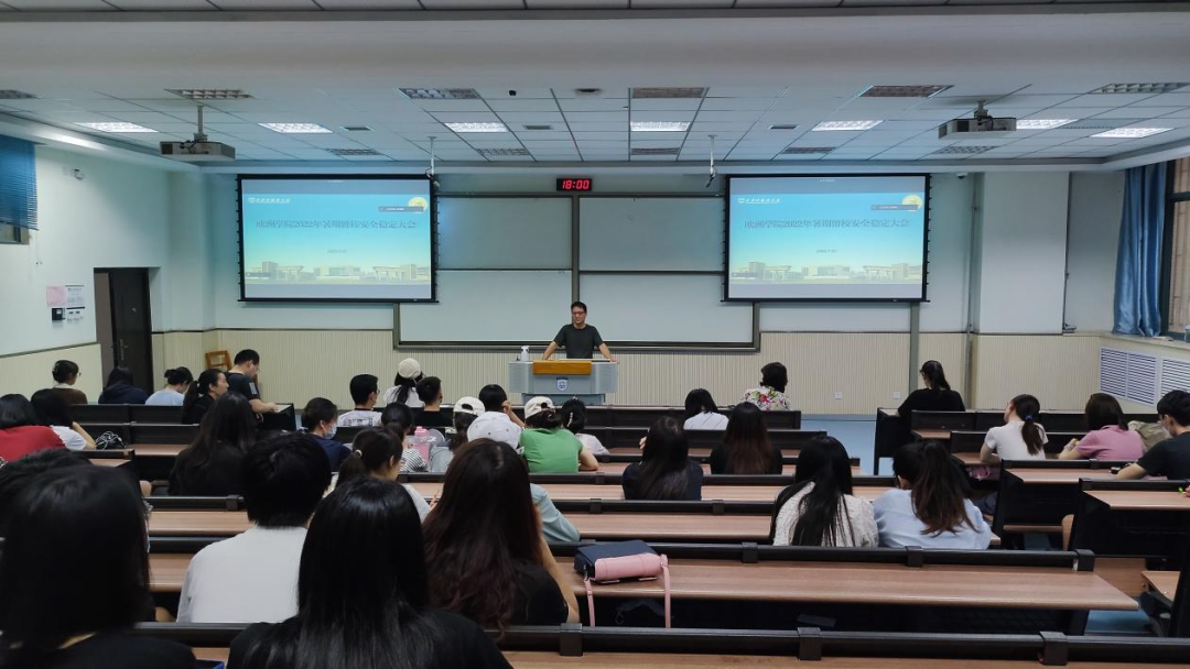在SA102教室召开了2022年暑期留校安全稳定大会,学院党委书记刘小勇,党委副书记纪彩玲,各年级辅导员老师以及全体留宿学生线下线上参加了本次会议,会议由学工秘书杨雨聪主持。