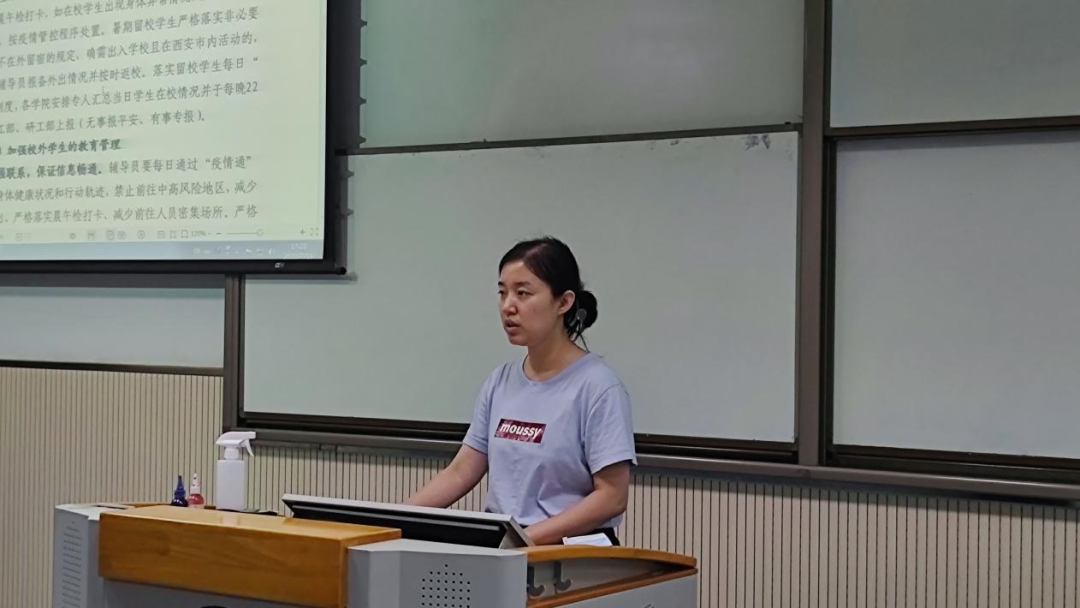 首先,各年级辅导员详细解读了留校期间学校的管理服务和保障。2021级辅导员杨子江解读了疫情防控和日常管理规定,2020级辅导员于悦洋对公寓管理细则及门禁管理要求进行了讲解,2019级辅导员李昶昭就暑期出校、出市、出省要求进行了详细阐述,2018级辅导员徐一丹借助自身经历,再一次敲响了互联网信息安全及谨防电信诈骗的警钟。