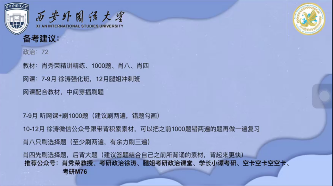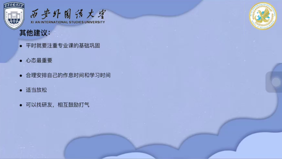 接下来,缪同学分享了自己的备考专业课的经验,也为其他专业的同学提供了更好的学习思路和学习方法。