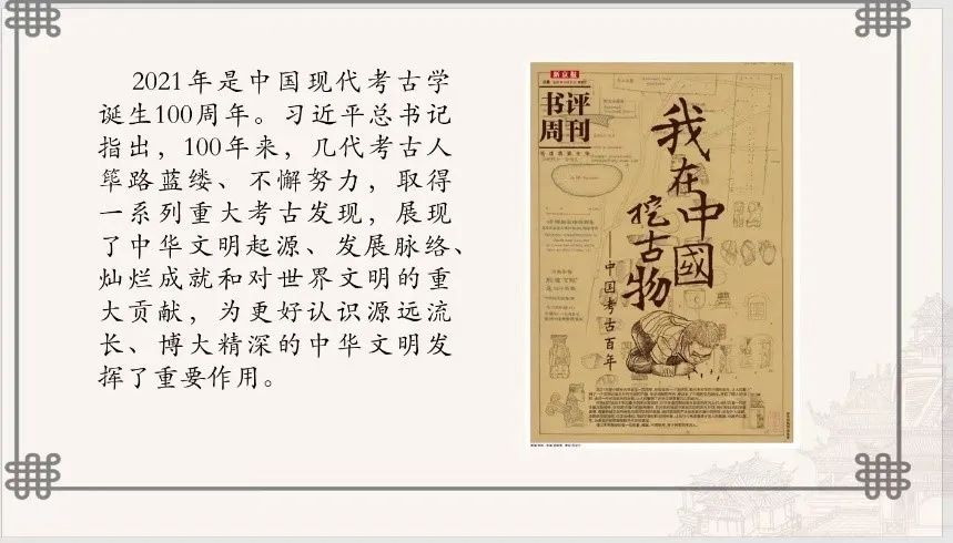 经过本次班会,同学们深刻认识了我国近年来的考古成就。考古新发现,不仅证明了中华民族璀璨悠久的文明,更见证了一代代中国考古人执着的探求精神。考古发现有助于同学们更好地认识到中国人看待世界、看待社会、看待人生的独特价值体系、文化内涵和精神品质,增强了同学们博采众长的文化自信。
