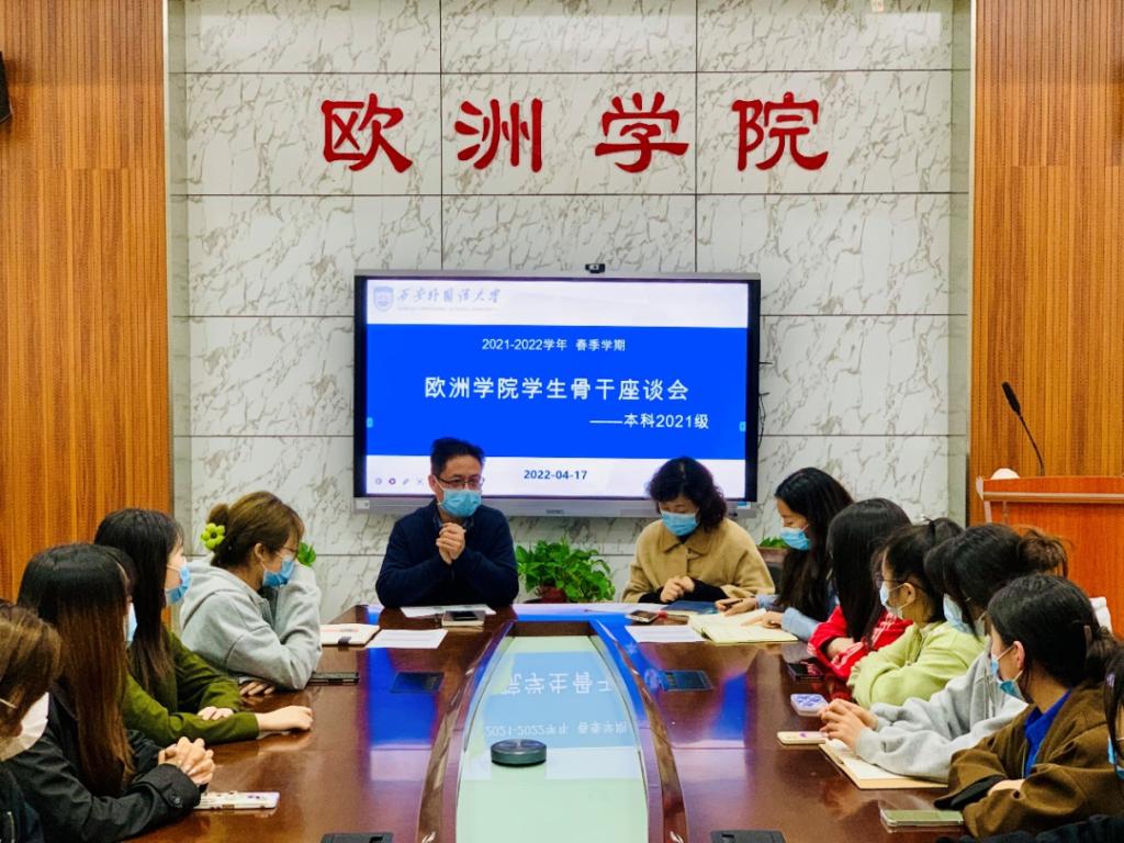 召开本科2021级学生干部座谈会。学院党委书记刘小勇、党委副书记纪彩玲、21级辅导员杨子江、李昶昭以及21级学生干部代表参加,会议由纪彩玲主持。
