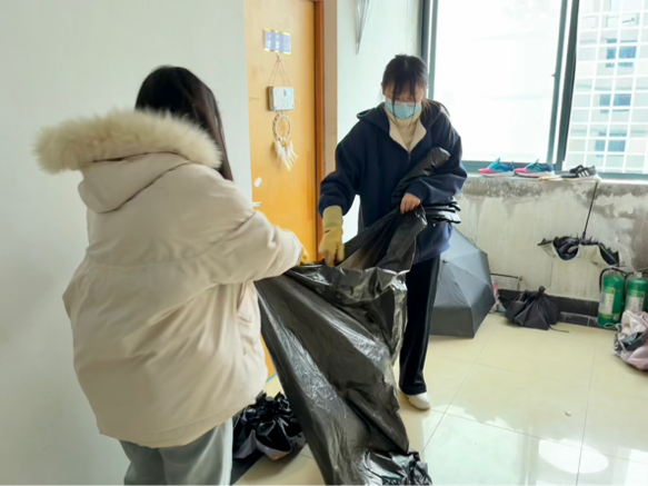 同时,因市区多地出现出血热病例,志愿者们巡楼提醒同学们注意个人和宿舍卫生、保持楼内公共区域整洁,并承担起隔离宿舍的垃圾清理工作。