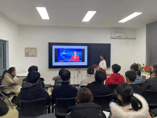 2021级其他班级同学线上同步观看本次班会。本次活动由西班牙语2102班班长陈菲主持。