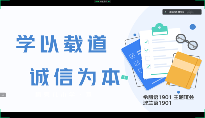 波兰语1901班、希腊语1901班于线上联合开展了“学以载道,诚信为本”主题班会,奈飞工厂