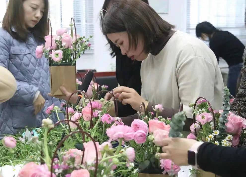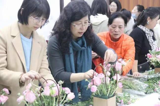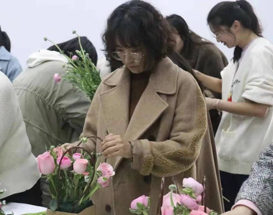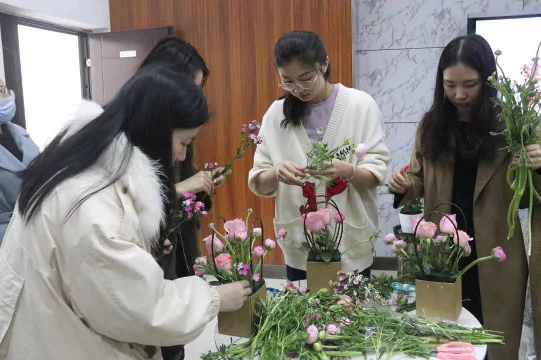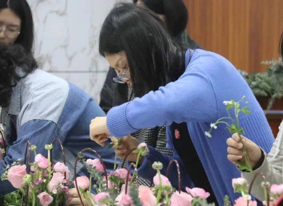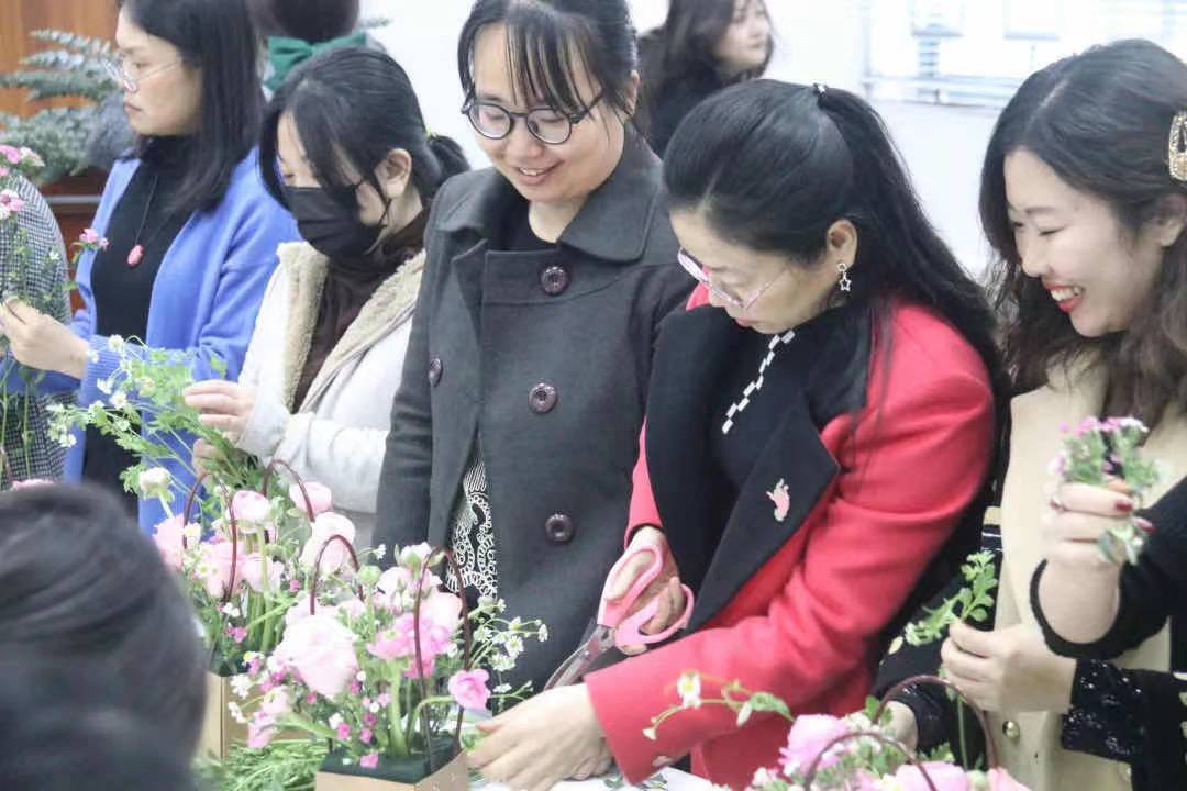 活动伊始,学院特邀资深花艺师现场讲授插花知识及技法。花艺师细致讲解了各类花型和每种插法表达的内涵,对插花的基本方法进行现场演示,为参加活动的女教工带来了一场生动的艺术教育。