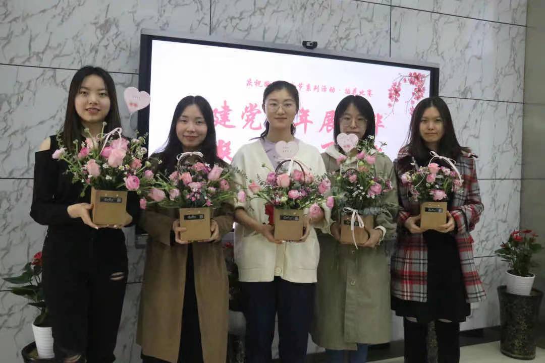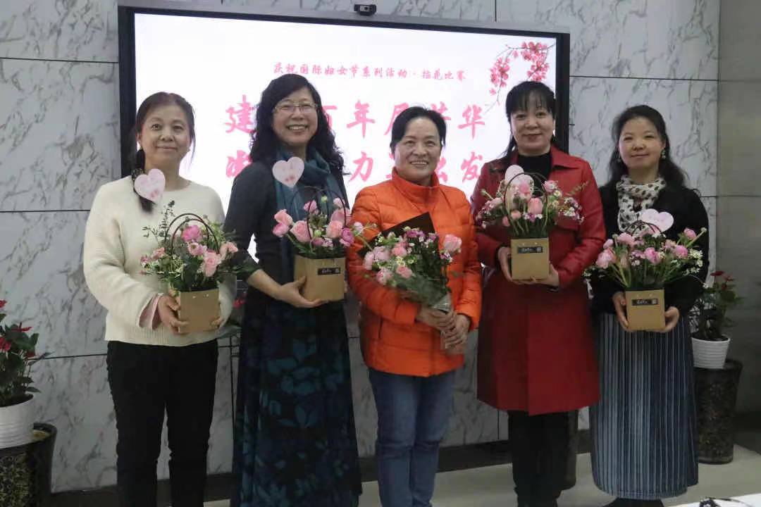 在JG110组织女教工开展了以“建党百年展芳华,凝心聚力再出发”为主题的庆祝国际劳动妇女节插花比赛。校工会主席康丰及女教工代表参加了此次活动。