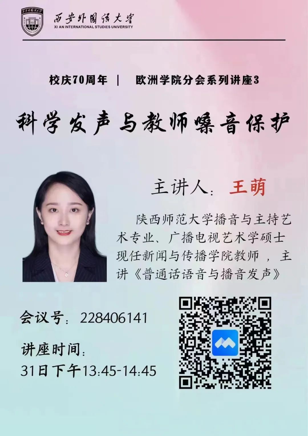 活动邀请新闻传播学院的李睿琦、王萌、樊强三位老师分别以“朗诵艺术与发音技巧”“科学发声与教师嗓音保护”“言语行为的艺术呈现”为题,举办了三期讲座,三位老师扎实的发音理论、高超的发音应用技巧、精湛的发音技能使大家获益匪浅。