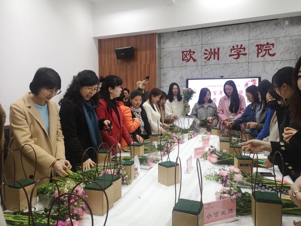 活动伊始,学院特邀资深花艺师现场讲授插花知识及技法。花艺师细致讲解了各类花型和每种插法表达的内涵,对插花的基本方法进行现场演示,为参加活动的女教工带来了一场生动的艺术教育。