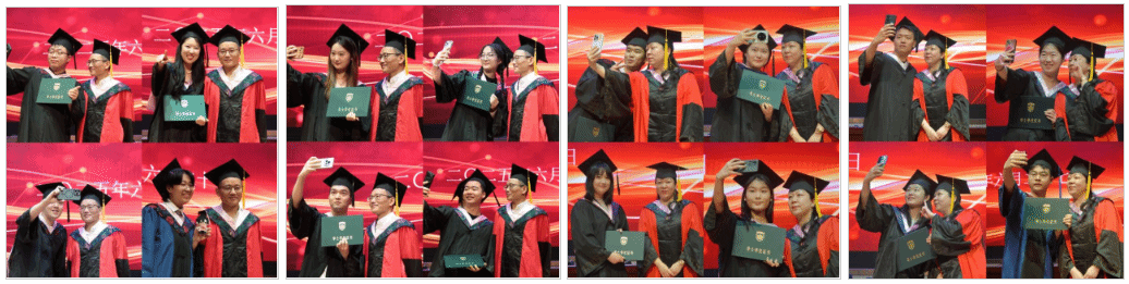 学位授予环节将典礼推向高潮,张世胜教授和张红婕副教授为毕业生一一拨穗、颁发学位证书并合影。