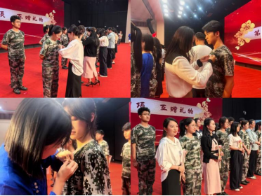 随后,教师代表为新生佩戴校徽,新生代表向教师献花致敬。