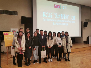 16级学生吴城炬(中)获得2019第六届意大利语桥比赛本科组第一名