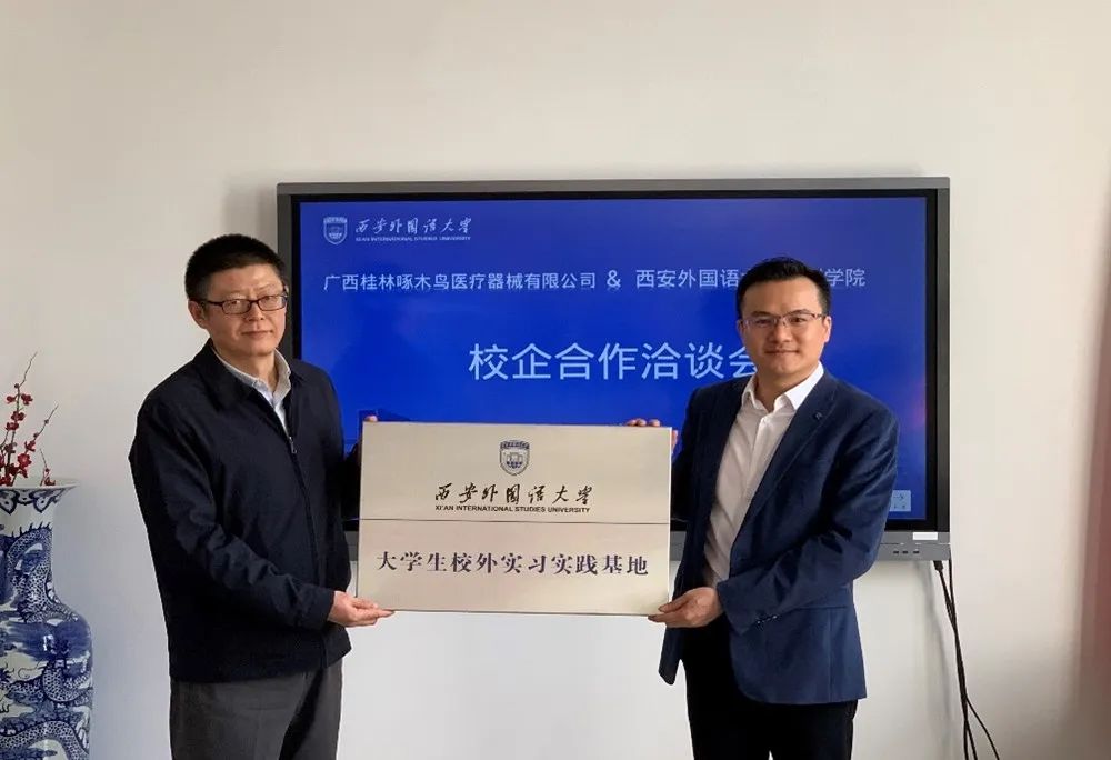 与桂林啄木鸟医疗器械有限公司代表在B428会议室成功举行校企洽谈会议。啄木鸟医疗器械有限公司副总经理林剑华、国际销售部美洲区销售总监王国龙、国际销售部美洲区销售经理何旭超(奈飞工厂