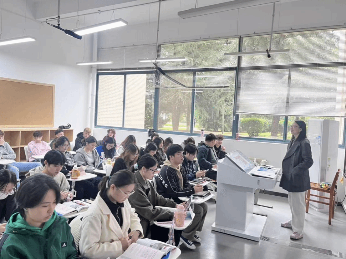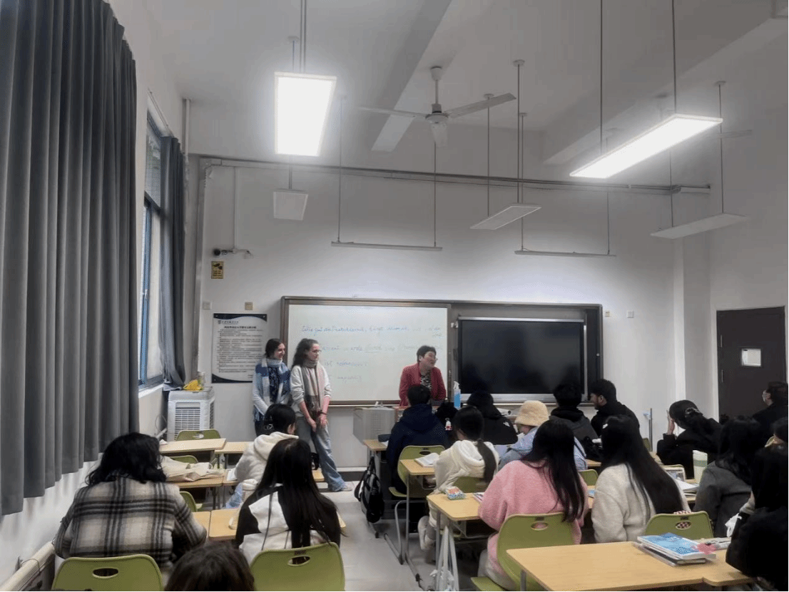 校园景致与设施的参观环节告一段落,交流活动随即步入核心篇章。法国学子依序分为三组,受邀走进法语三年级的课堂。此间,中法青年围绕语言研习、文化异趣及校园日常等议题,展开了深入而热烈的对话。法国学生分享了他们来华后的初感与文化体悟,而作为“东道主”的法语专业学子,则主动分享自身的求学点滴,并热忱解答法国友人提出的问题。课堂氛围轻松融洽,笑语与掌声交织,思想与文化在碰撞中激荡出新的火花。