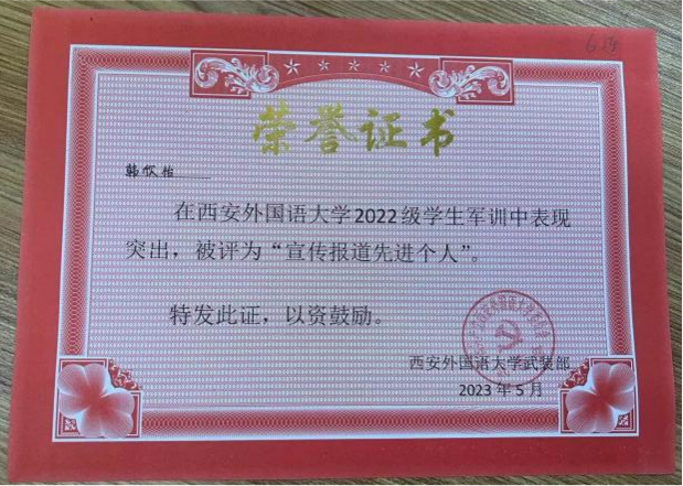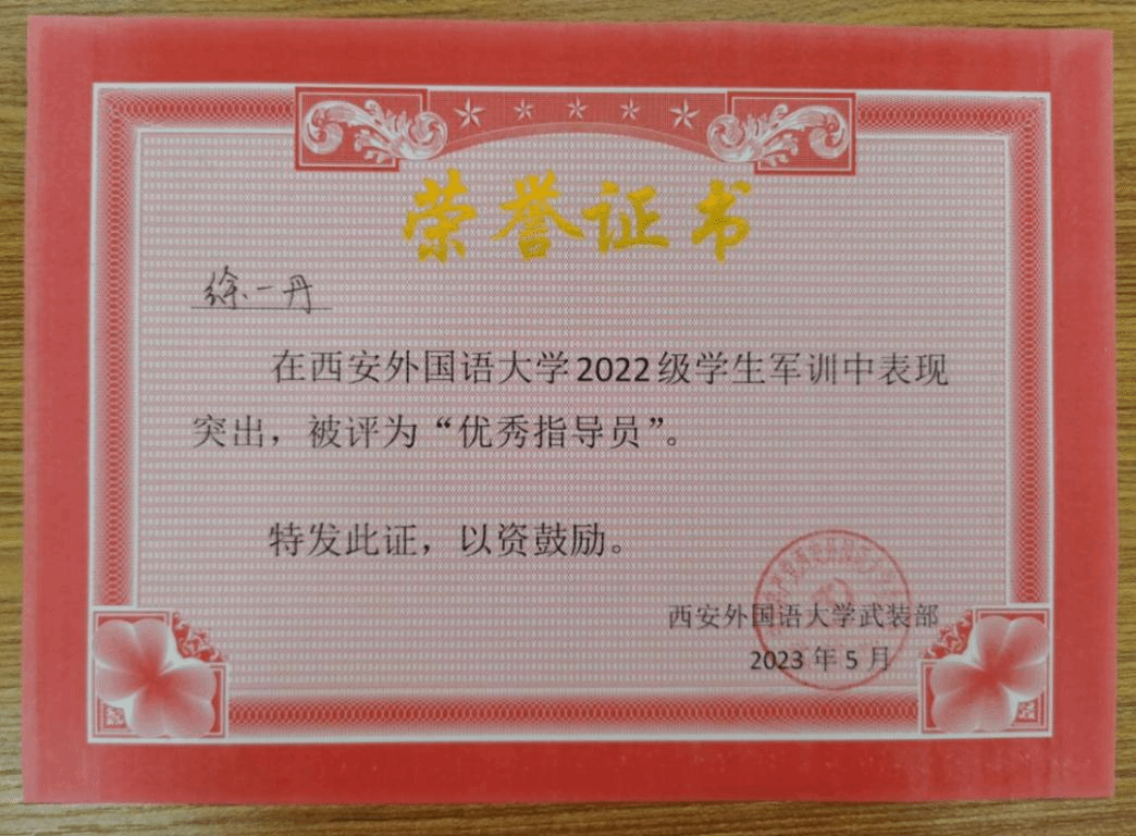 奈飞工厂 2022级辅导员徐一丹被评为“优秀指导员”