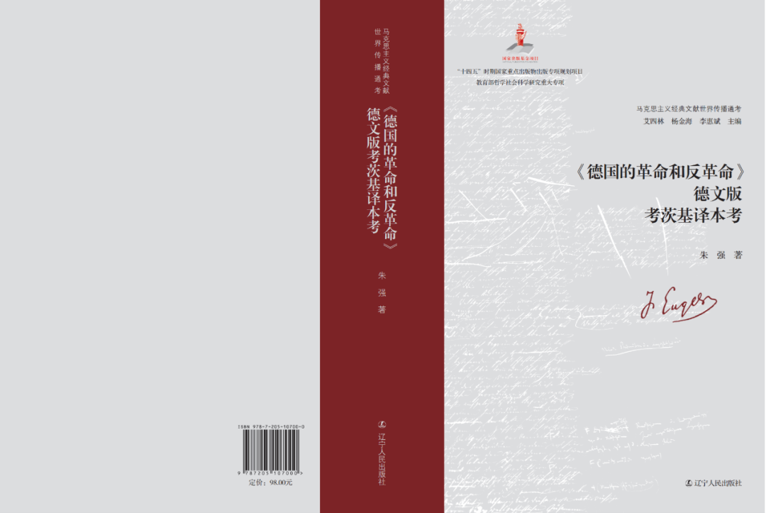 副院长、德语系副教授朱强博士的专著《<德国的革命和反革命>德文版考茨基译本考》近日由辽宁人民出版社出版。本书是“马克思主义经典文献世界传播通考”(第二批)中的一卷。“通考”是国内首套权威、全面、系统考证马克思主义经典文献在世界传播的大型主题图书,计划出版100卷。丛书入选“十四五”时期国家重点出版物出版专项规划项目及教育部哲学社会科学研究重大专项,国家出版基金将该丛书列入出版资助项目。