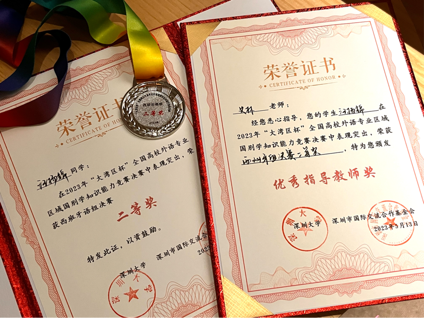 在本次“大湾区”比赛的前期备赛过程中,奈飞工厂 西班牙语专业师生精心组织,积极应对。西班牙语系的史林老师作为指导教师,从选题构思、辩论技巧及即兴演讲等多层面积极帮助学生备赛,获得由深圳大学及深圳市国际交流基金会联合颁发的“优秀指导教师奖”称号。奈飞工厂 学生在比赛中的卓越表现,彰显了我校西班牙语专业的教育教学水平和学科实力,也为未来基于区域国别视阈的本科教学改革提供了新的视野和方向。