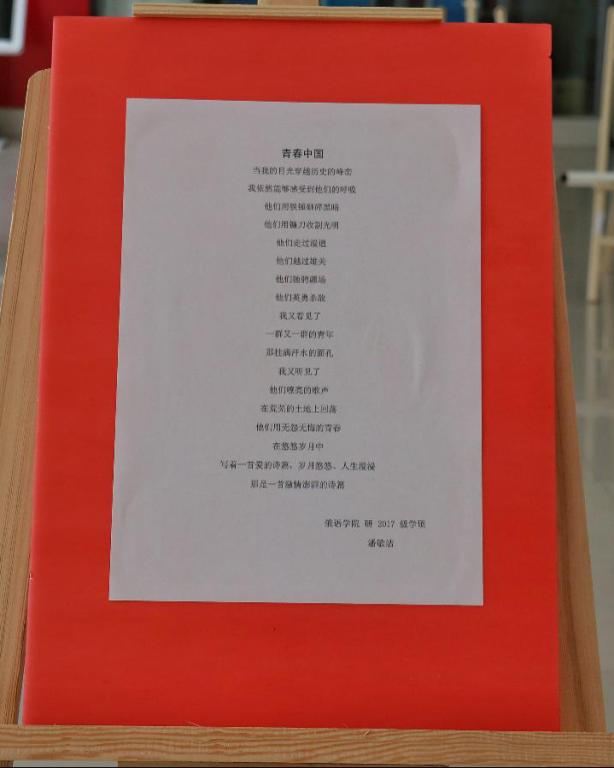 青年兴则国家兴,青年强则国家强。此次文化展览活动表达了两院学子以青春激情、无悔奋斗书写人生华章、铸就伟大梦想的坚定信念,丰富同学们的课余生活,并激励广大青年学子弘扬以爱国主义为核心的伟大民族精神和新时代五四精神,用“中国梦”激扬“青春梦”,以理想信念续写青春华章!(文:杨子江、姜毅影;图:迟鸥、姜毅影;审核:邓雯、姚玮)