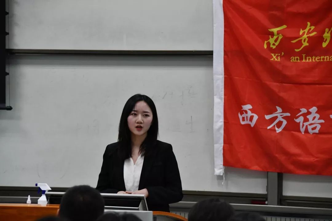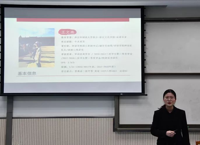 展示环节过后,15级意语杨萍萍作为已经成功就职的优秀学姐,分别从前期准备、简历书写、网上申请、单面群面、表达技巧、应对心态等多个方面,详细地分享了自己的求职经验,为学弟学妹们提供了宝贵的意见和建议。